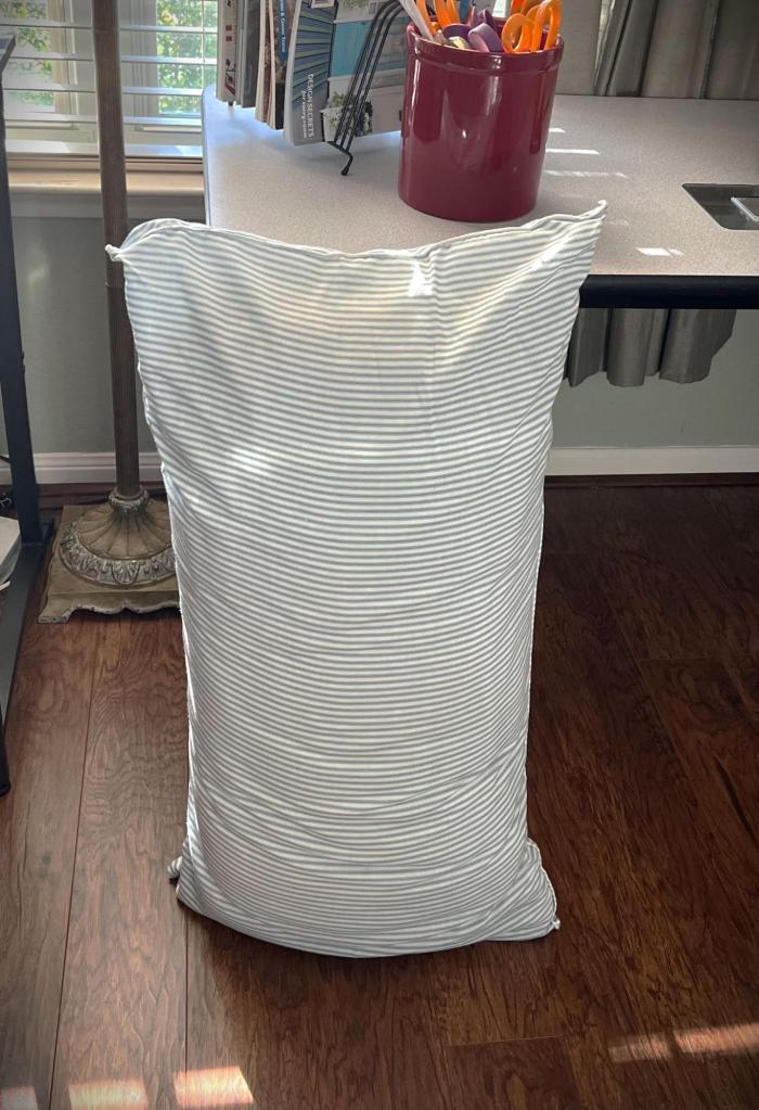 I removed the filler and cut it into strips. I sewed a tube and then restuffed it with the filler from the pillow.
