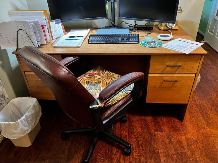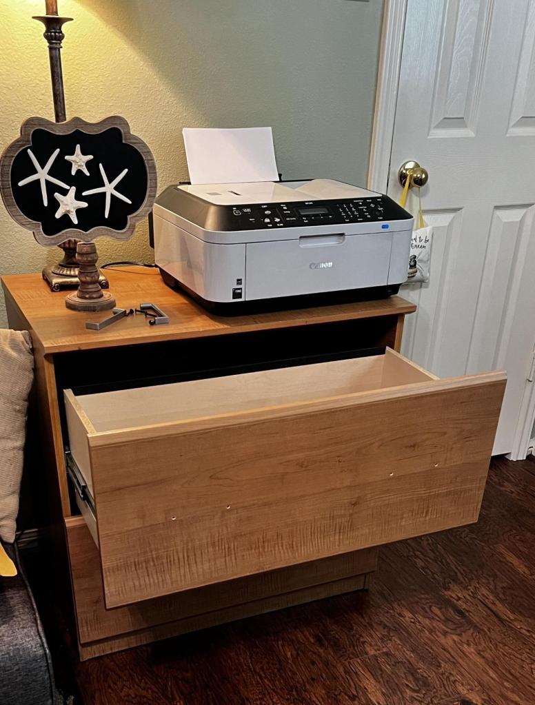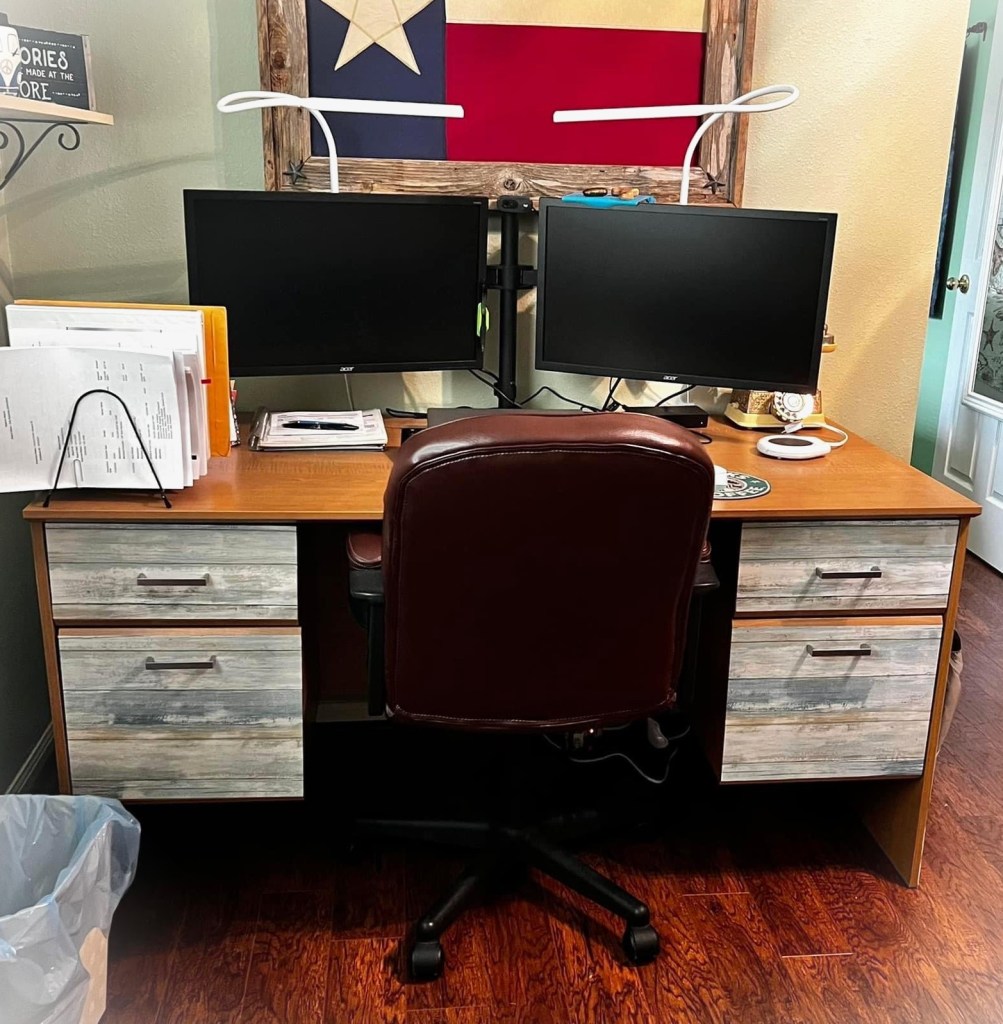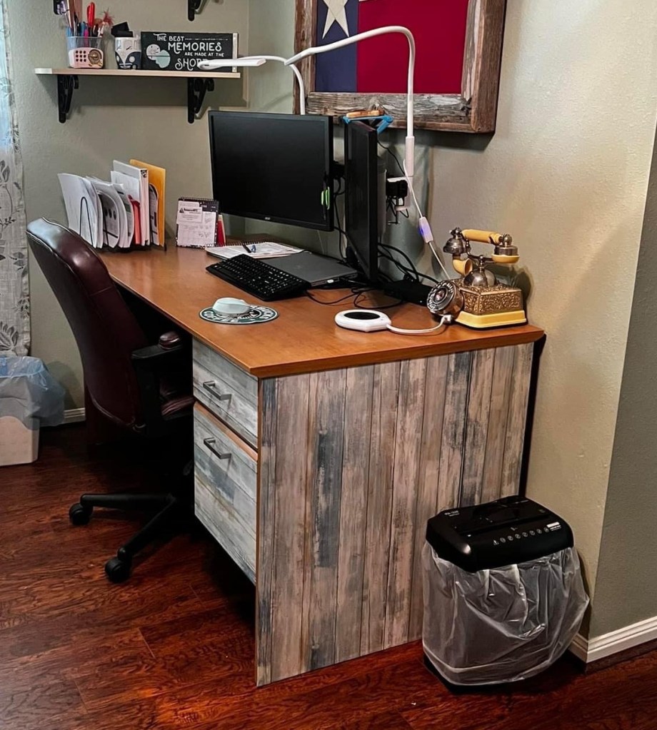 I have had my home office furniture for close to 15 years! It is still in great shape, so I couldn’t justify getting something new just because I no longer “liked” the color. It was time to do a quick and easy design upgrade.