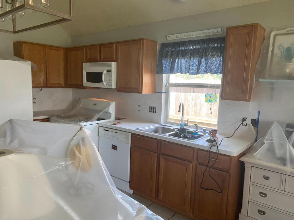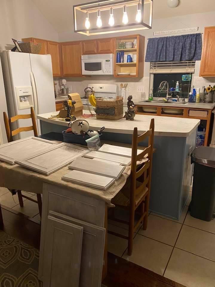 I liked the look, so I moved on to the rest of the kitchen counters and cabinets