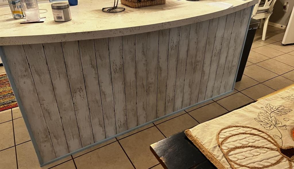 I eventually decided to decorate the front of the island with peel and stick wallpaper.