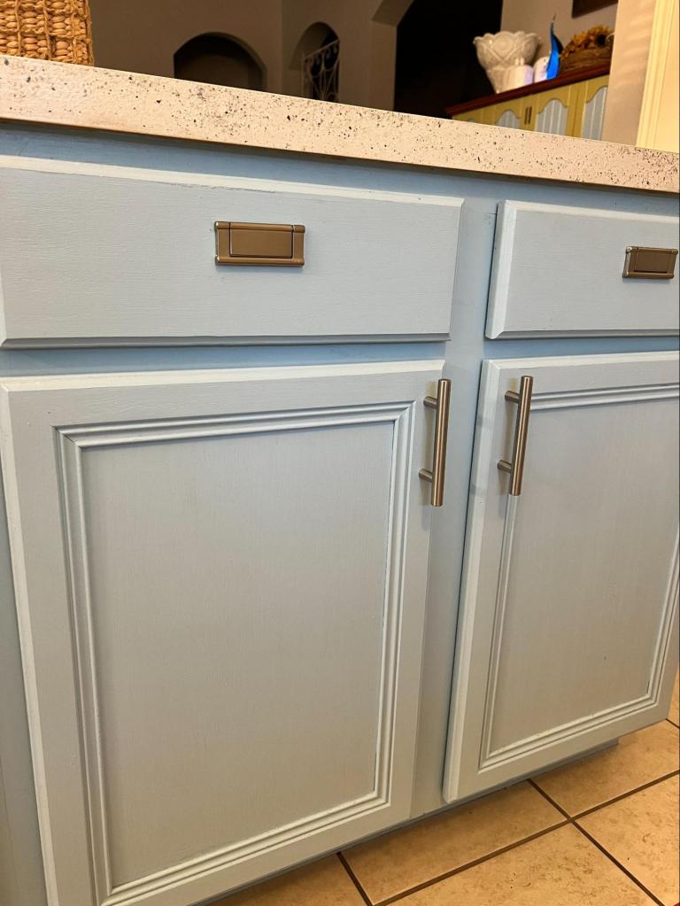 To finish the look of the cabinets, I ordered cabinet handles and drawer pulls from Amazon.