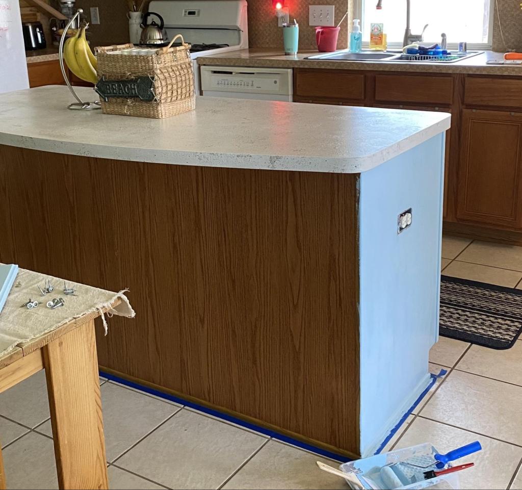 Then I decided to take the leap and paint the island a blue to compliment my old white appliances. It gave me a beach house feel!