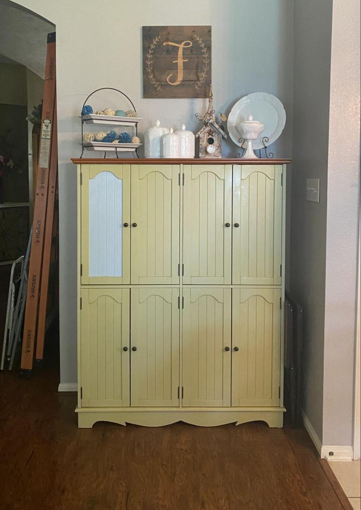 I have a small kitchen with a small pantry. With grandkids, in an active household, that little pantry just wasn’t enough. Since my living and kitchen space are open concept, I decided to turn a free standing cabinet into my extra pantry.