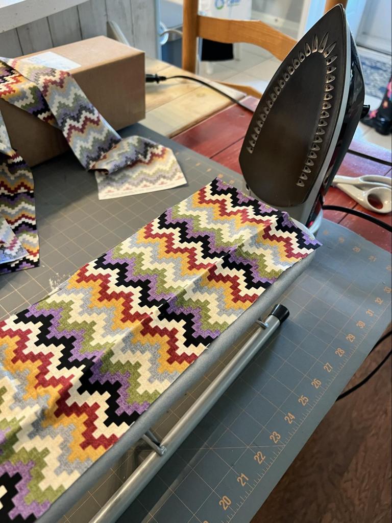 When using fabric to attach to a box with glue or mod podge (which is what I used), you want to start by making sure it is wrinkle free so that it will lay flat. Once I ironed the fabric, I then measured and cut 4 pieces to cover all sides of the box.
