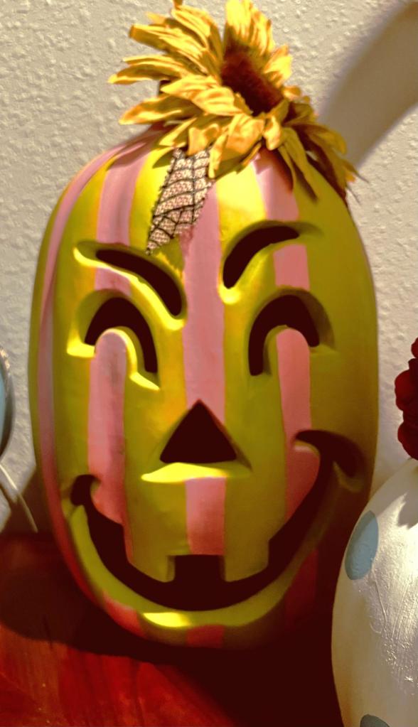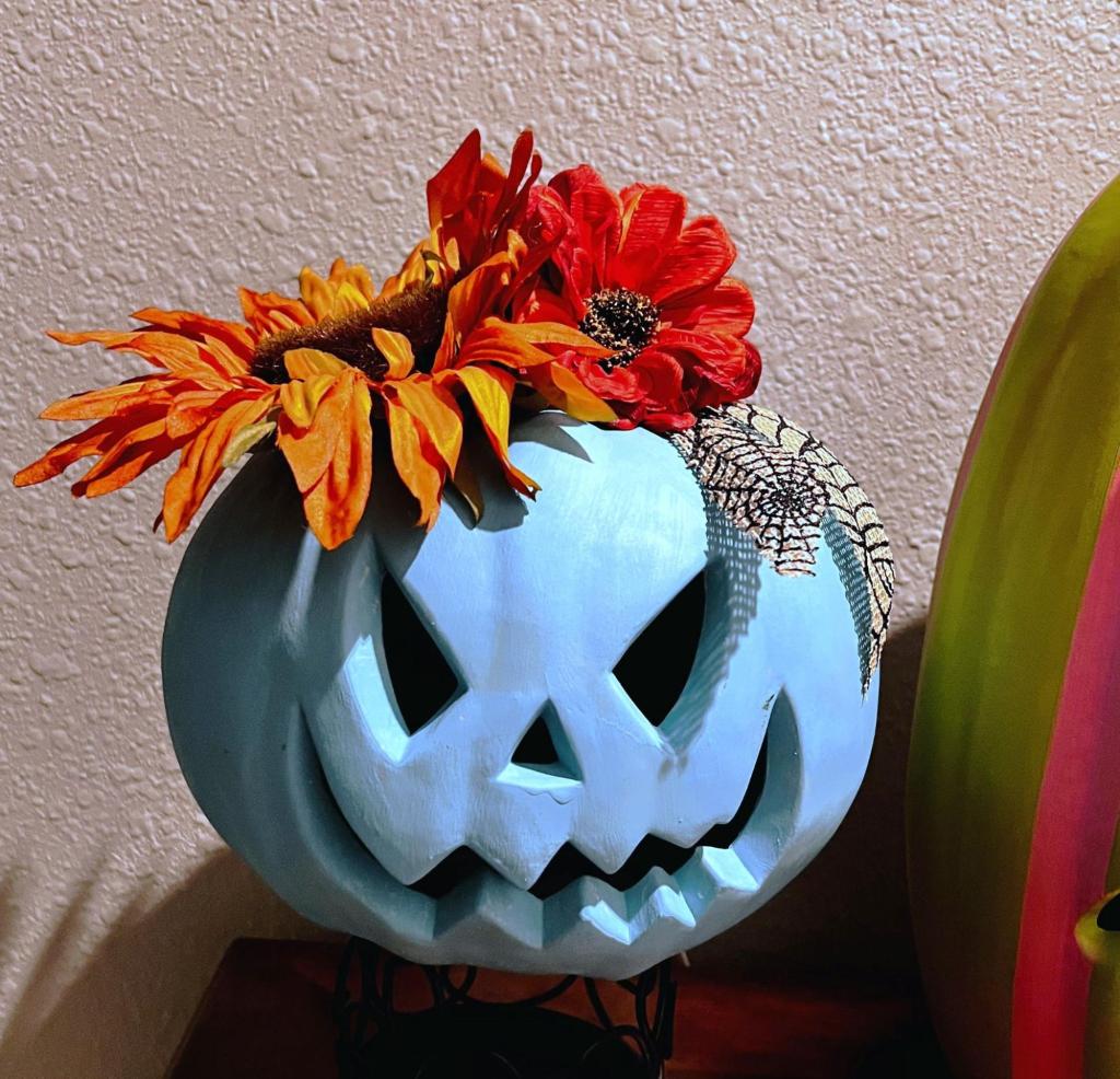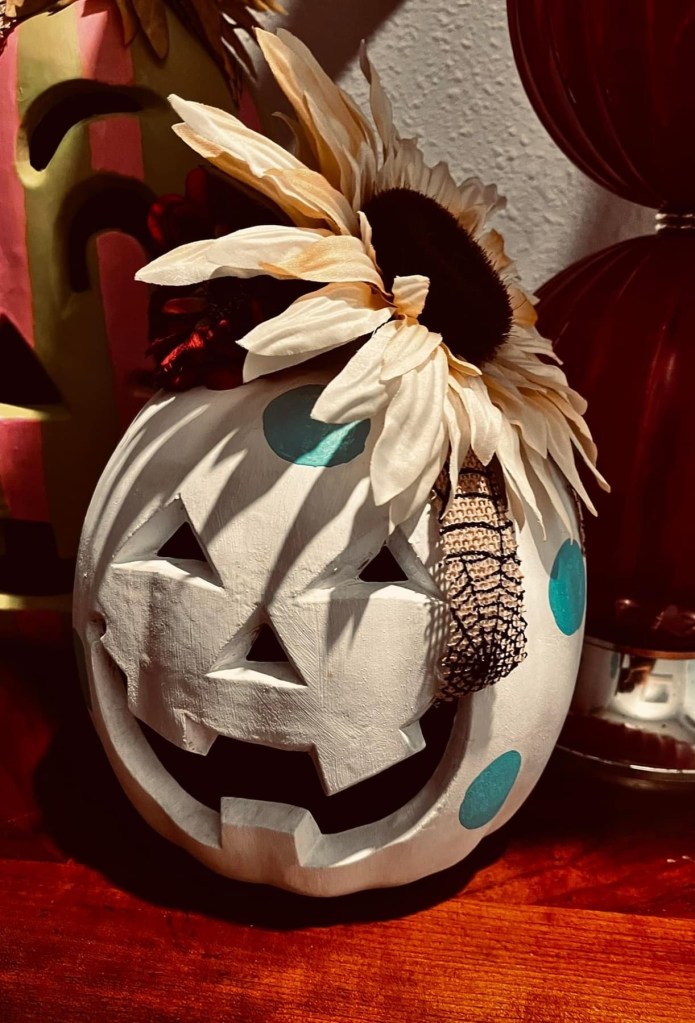 With chalk paint, ribbon and artificial fall flowers they don’t look so “scary” anymore!